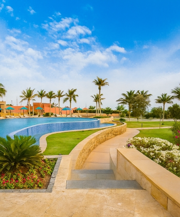 The Royal L'Azure Resort, positioned as the inaugiral landmark within the expansie NEOM project area, epitomizes refinement through its fully firnished villas, chalets, premier, and executive rooms.